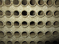 熱交換器の材質である軟鋼金属や銅にスケールが付着すると、物理洗浄(ブラッシング)では除去ができなくなります。